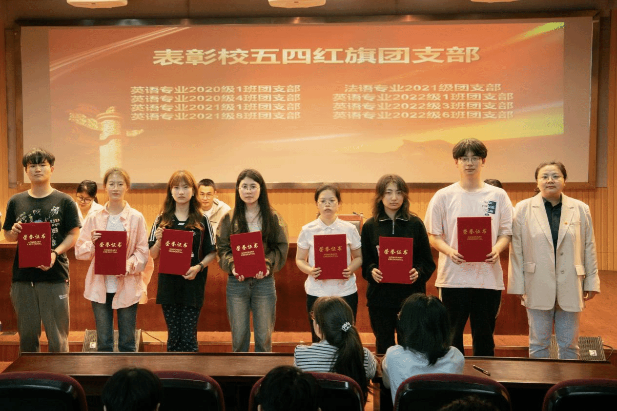校红旗团支部团支书、英语(师范)专业2022(3)班的袁琦张帅坦言此次表彰大会让她深受触动。在她看来,作为新时代的外院青年,要以表彰大会上的优秀学生为榜样,永葆入团初心,矢志不渝的为团组织发展作出贡献,提高思想觉悟,自觉为国家进步贡献青春力量。