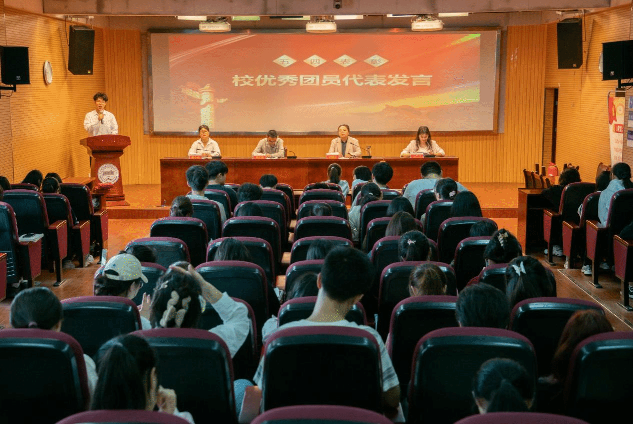 于E503报告厅召开2024年春季学期入团仪式暨五四总结表彰大会。学院党委副书记何媛君出席大会,学院百余名学生代表共同参加。