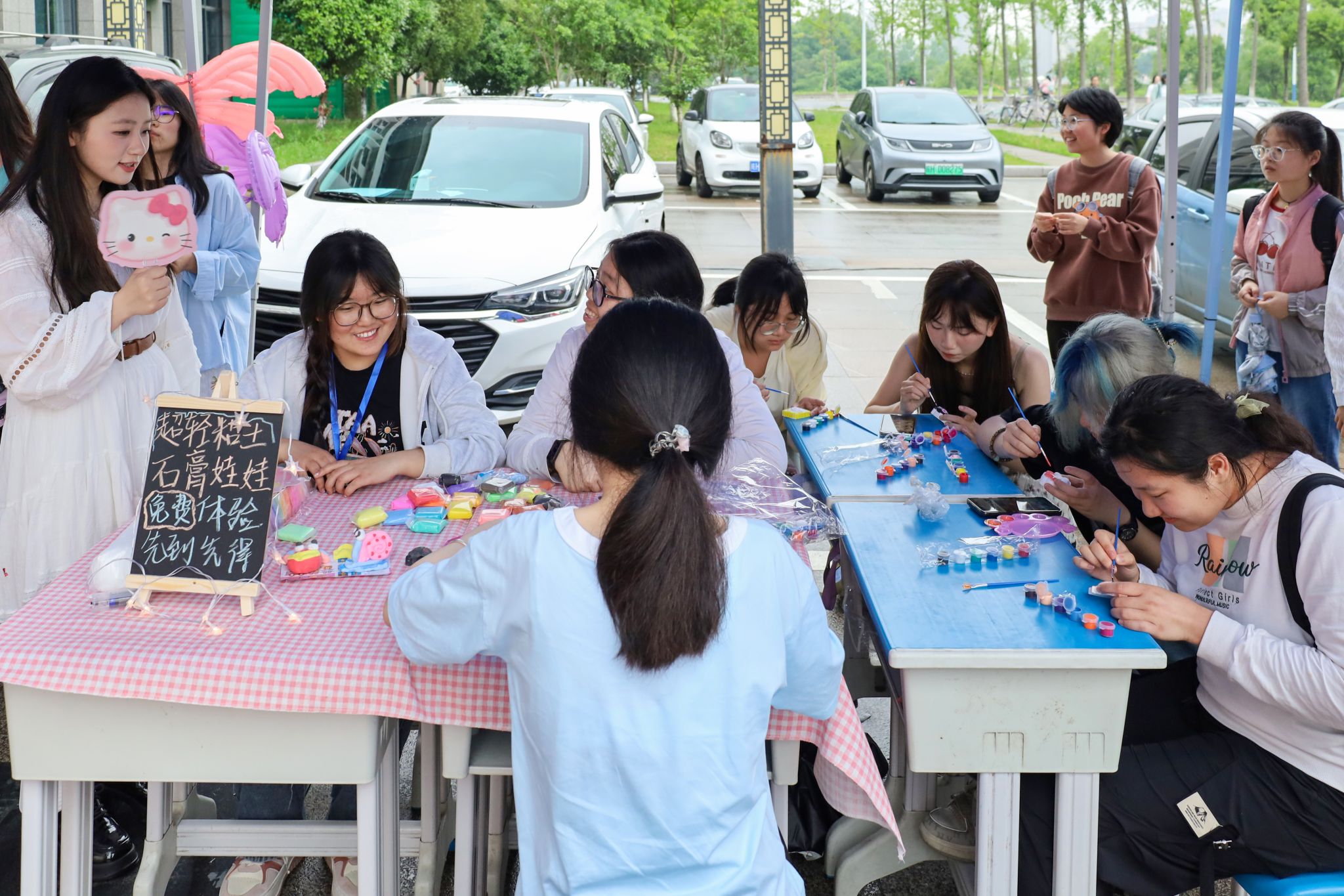 “这里有超轻粘土和石膏娃娃,大家可以随意发挥想象力进行创作、涂鸦。”“约会春天,彩绘青春”摊点前,外国语言文学类专业2023(5)班的余诗雨向路过的学生招呼着。“我很喜欢给石膏娃娃涂色,能够沉浸在自己的世界里安心创作。”外国语言文学类专业2023(7)班的陶亚楠向朋友展示着自己“新出炉”的石膏娃娃。“制作出一个属于自己的作品会让我很有成就感。”她表示,通过此次活动自己结识了很多新朋友,也感受到了集体的力量与温暖。