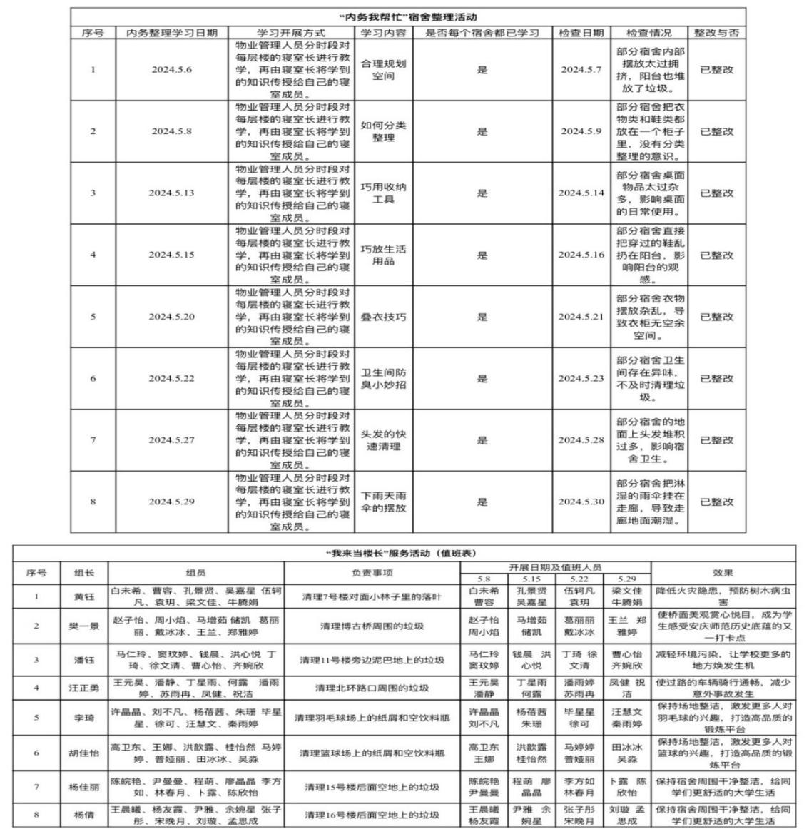 还开展了“大家筑小舍,小舍出大家”现场服务活动,活动形式多样、内容新颖,包含“宿舍安全知识知多少”宣传活动、“我来当楼长”第二课堂活动、“内务我帮忙”宿舍整理活动、《爱情岛论坛