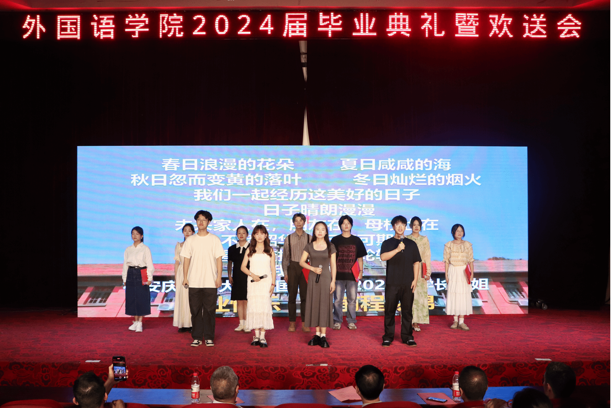 “相逢不恨晚,时间拆不散……”军训照、团建活动照、晚会合照……诸多2024届毕业生照片在电子大屏轮播,伴随着舒缓的音乐,毕业生表彰暨欢送会正式拉开序幕。本次表彰会颁发校友联系人证书,省级、校级优秀毕业生证书,优秀毕业生党员证书,百余名毕业生受到表彰。表彰同时还穿插了歌曲《仰望星空》、情景剧《聚青春之火,燃时代之光》等精彩的节目表演,毕业典礼暨欢送会在全场大合唱《灯火中的中国》的歌声中圆满结束。