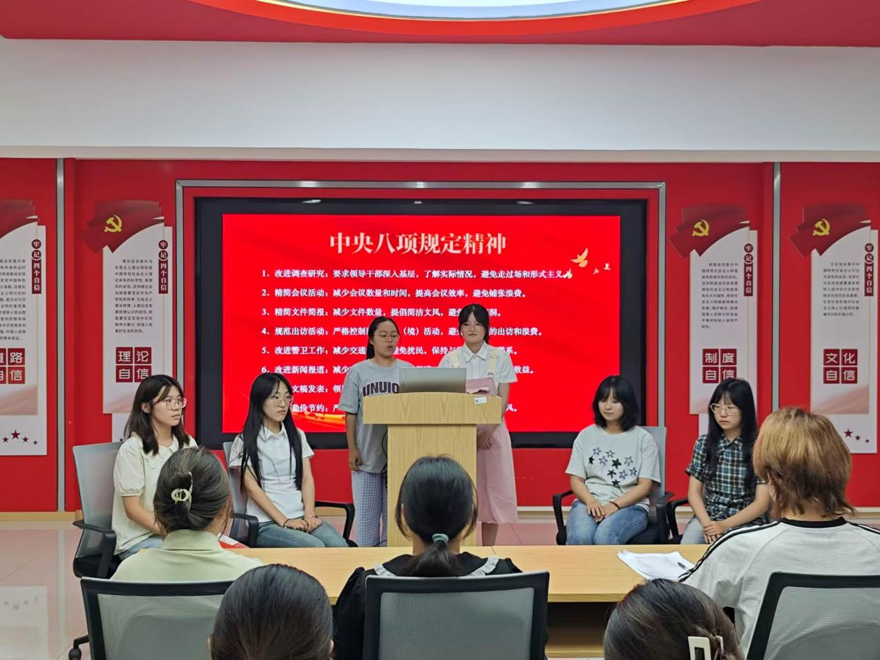 比赛现场,各小组深入剖析了违反中央八项规定精神的常见问题及其表现形式,并以违反中央八项规定精神的典型问题为切入点,深刻剖析了违反中央八项规定精神的危害,对如何贯彻落实廉洁自律行动提出具体要求;部分小组运用“宣讲+演绎”结合的创新形式,讲述身边党员干部对于中央八项规定精神的认识与理解,用通俗易懂的语言和形象生动的案例,将中央八项规定精神讲解深入浅出,赢得了现场评委以及观众的阵阵掌声。