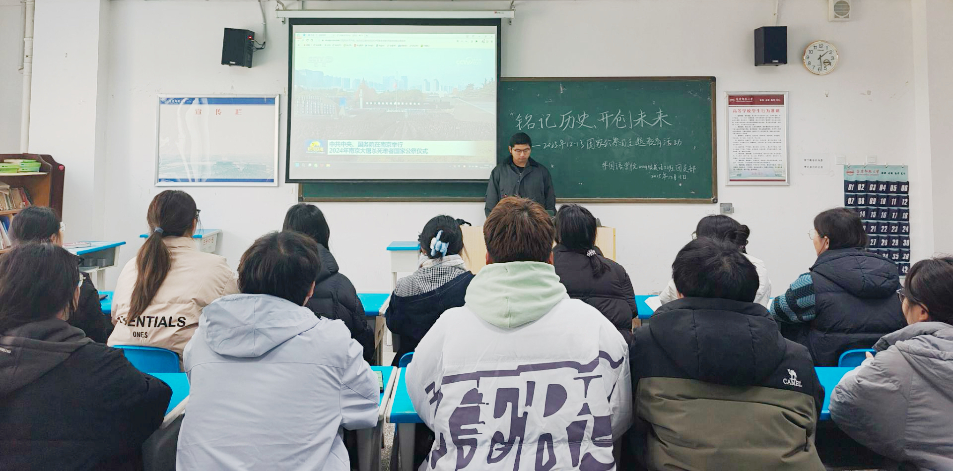 组织全体本科生、研究生团支部开展了“铭记历史·开创未来——‘12·13’国家公祭日”主题团日活动,引导青年学子在缅怀历史中凝聚奋进力量,在专业学习中厚植家国情怀。