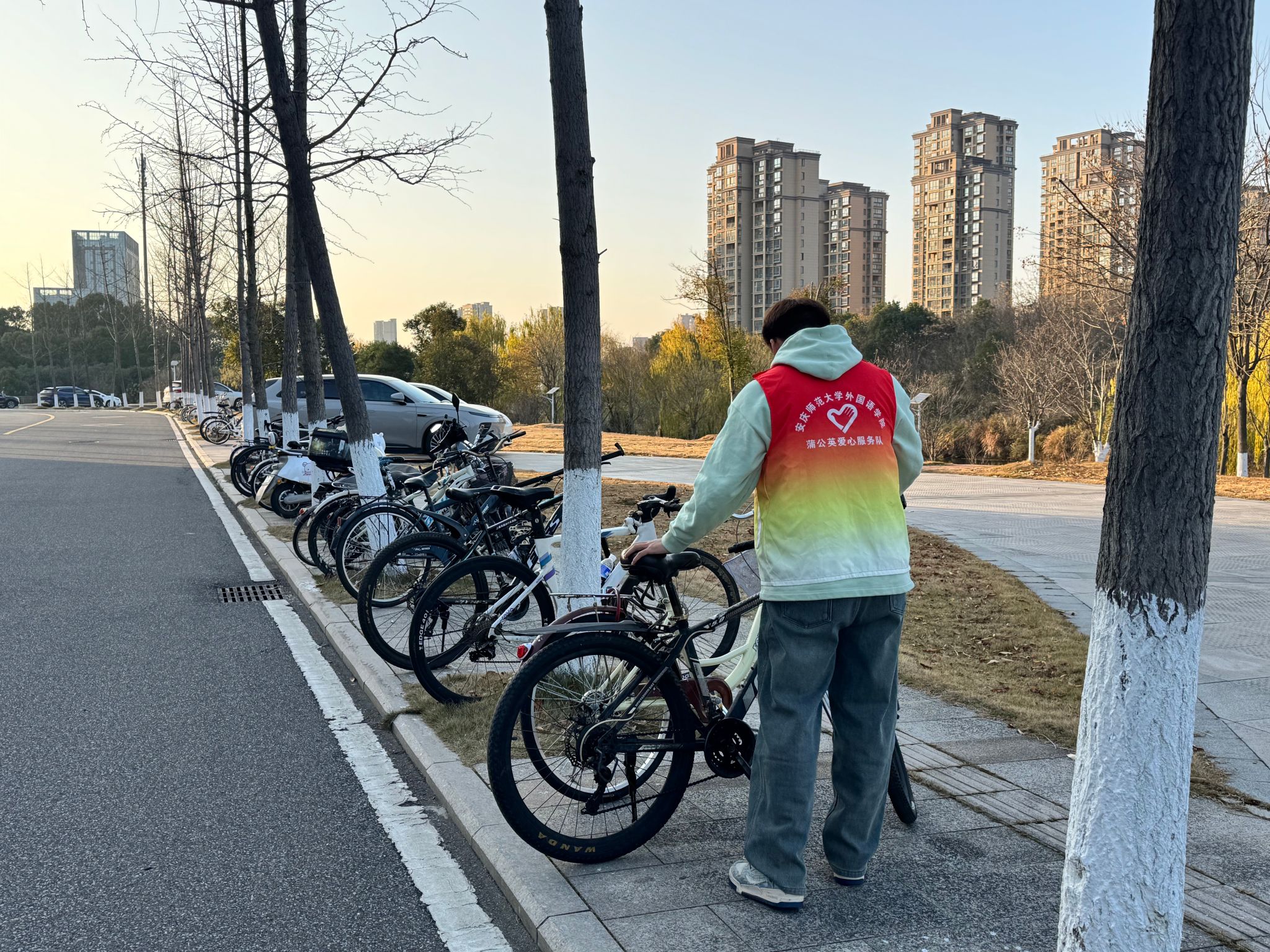 楼前自行车停放区域存在的车辆摆放随意、占用通道等问题,负责车辆规范整理的同学们耐心细致地逐一挪动、对齐,将自行车引导至指定区域有序停放。他们的精心付出,使原本杂乱的停车区变得井然有序,有效改善了楼宇周边的环境面貌,保障了通行安全与顺畅。这一行动不仅是简单的体力劳动,更是公共秩序维护、规则意识养成的生动实践,引导学生在服务校园、服务师生的具体实践中提升思想道德素养。